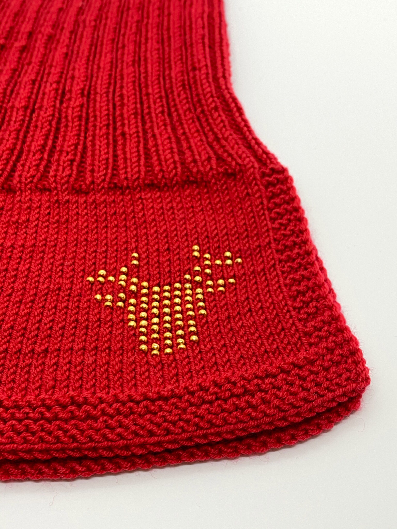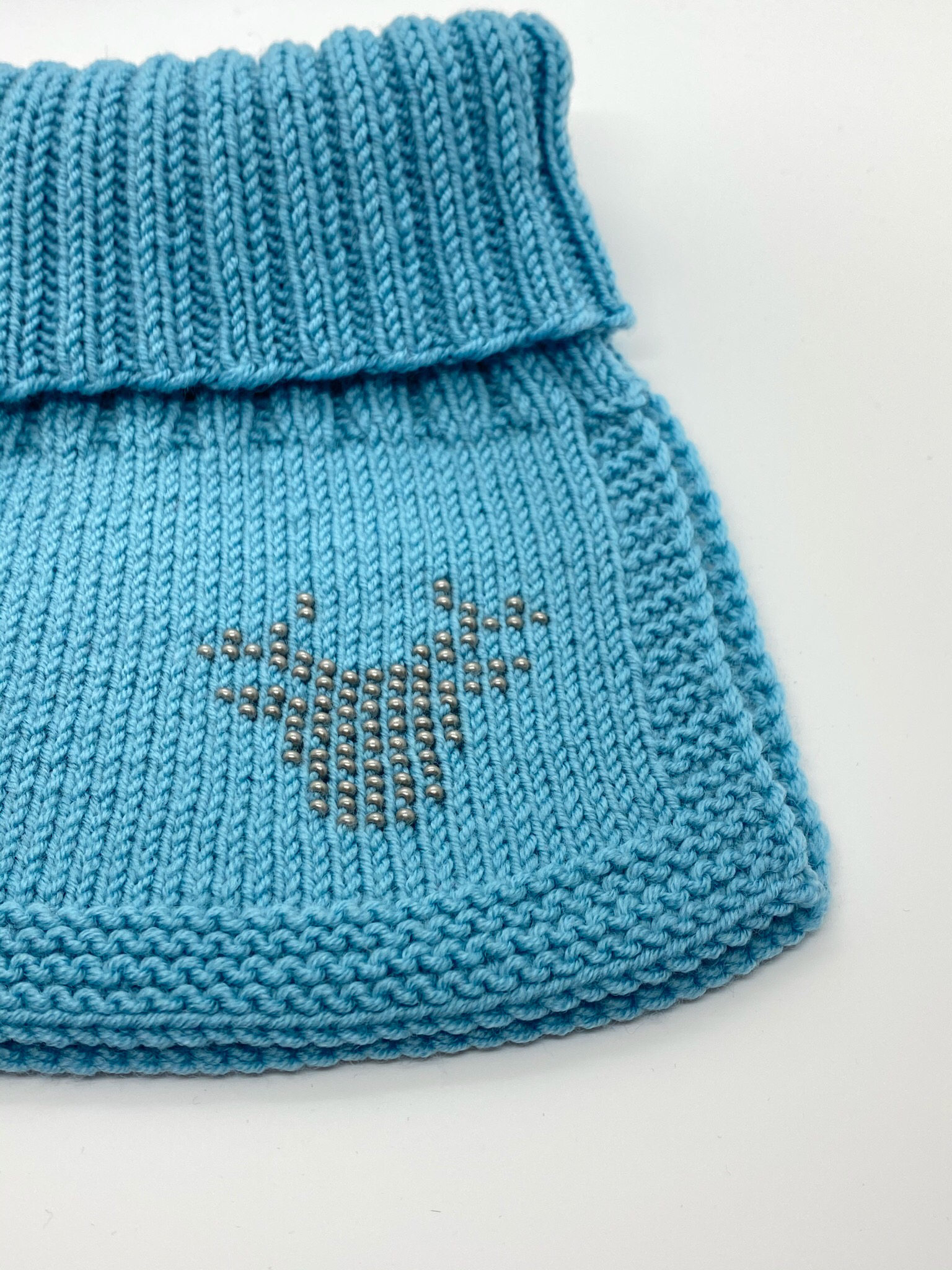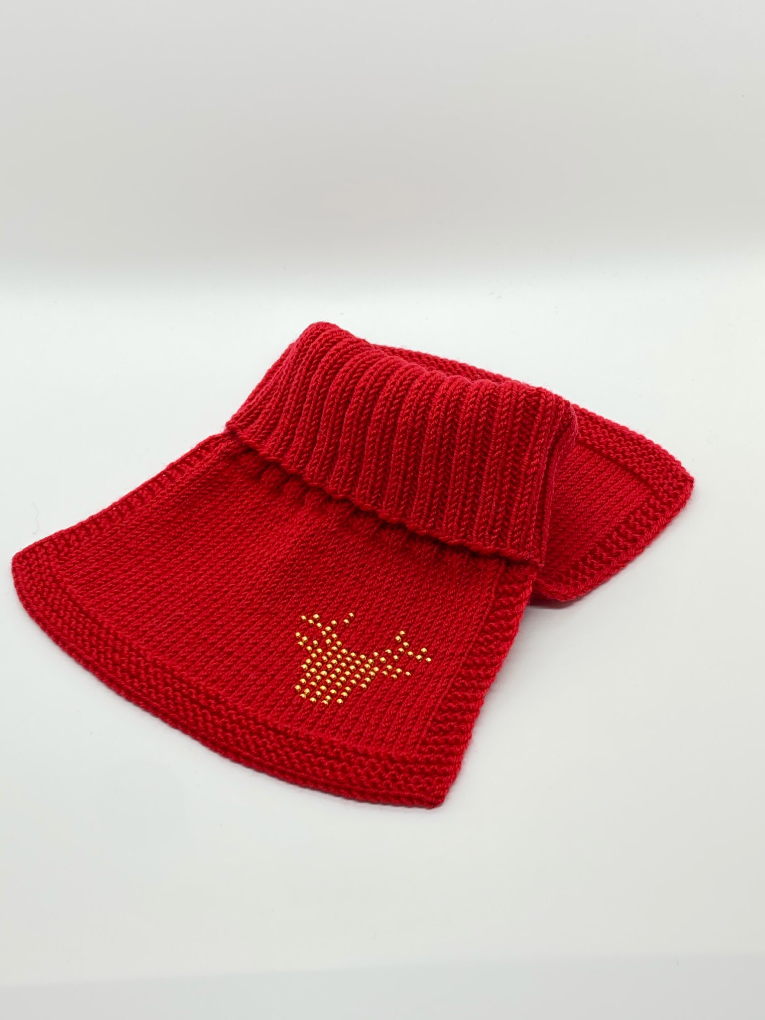 Supermyk og deilig hals til de minste med et vakkert lite reinsdyrmotiv i perler. Halsen er strikket i Drops Baby Merino (100 % ull) og har god elastisitet. Vaskes på 40 grader ullprogram i vaskepose, bruk Milo eller lignende. Motivet består av små perler som er strikket inn. Velg mellom flere fine farger.