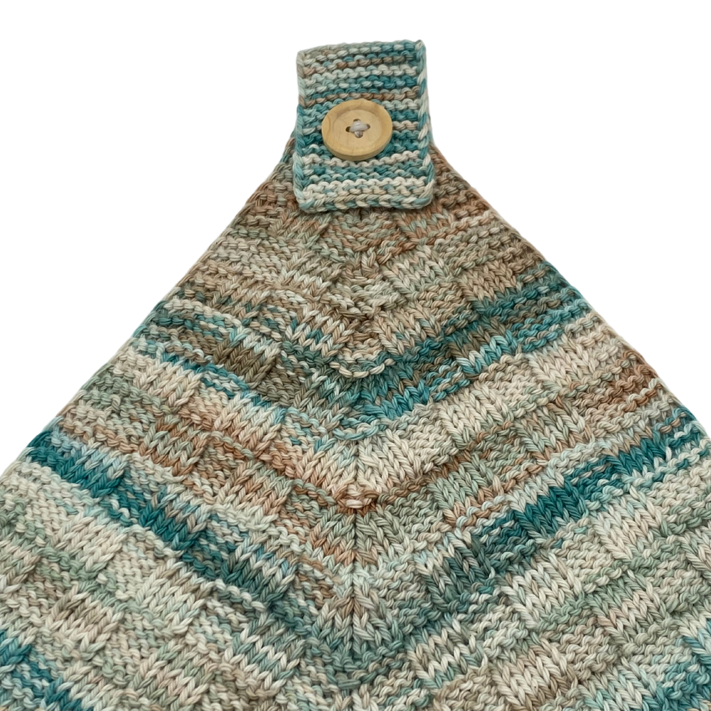 Et vakkert og delikat komfyrhåndkle sørger for at du alltid har håndkleet lett tilgjengelig på kjøkkenet. Ensfargede håndklær er strikket i Mandarin Naturell (100 % bomull), mens det grønnmelerte (grønt, sand og offwhite) er strikket i Plassards vakre Natura Fizz, et håndfarget garn i 100 % bomull. Lukkes med knapp, velg mellom flere varianter. Mål på håndkle fra oppheng til spiss er 47 cm og vidden er 40 cm. Vaskes på 60 grader.