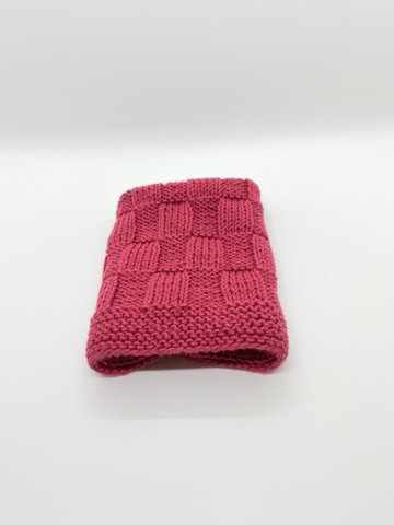 Fargen er bringebærrød. Vaskes på Max 60 grader og tørkes flatt i fasong.