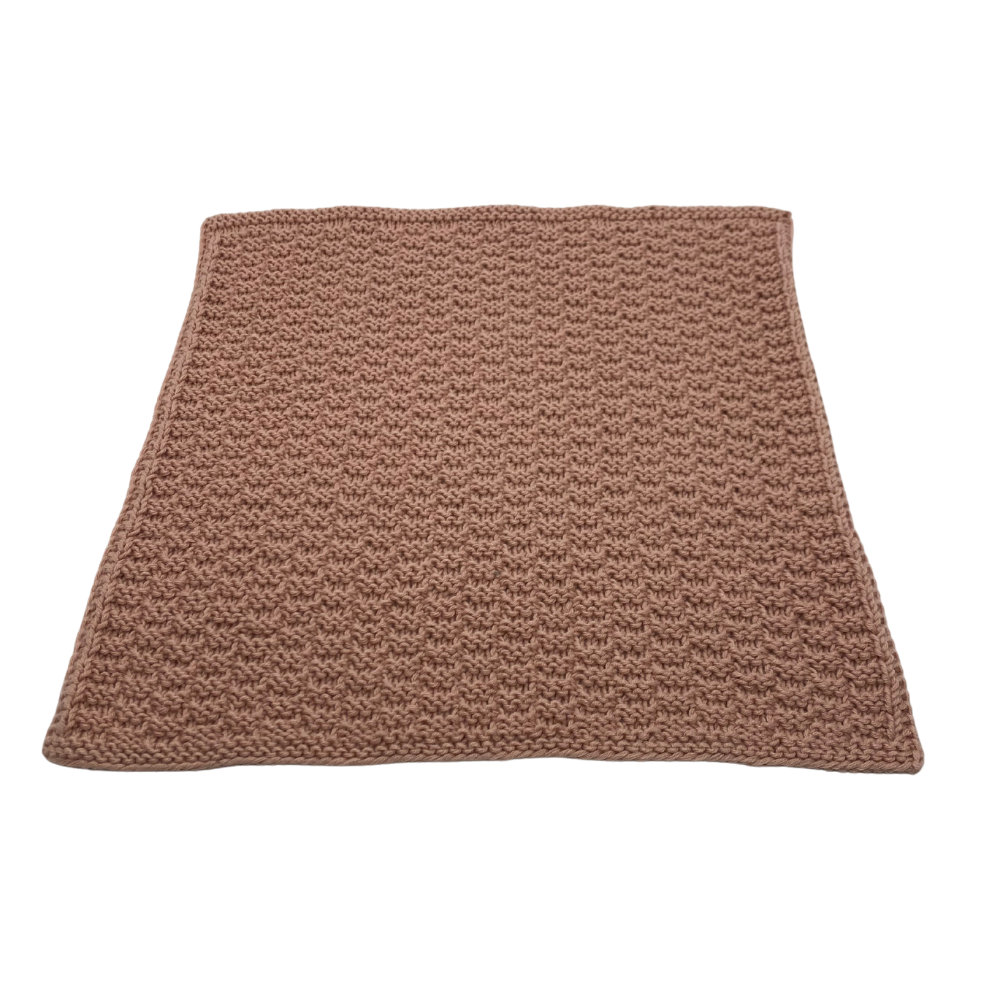 Kluten har en praktisk heklet hempe øverst, midt bak. Med tiden blir kluten bare bedre og bedre i bruk.