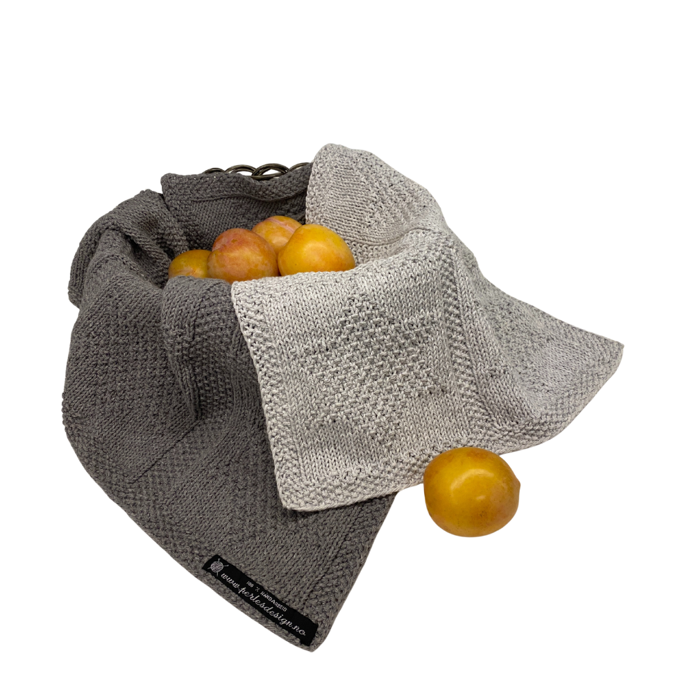 Mål ca 45x59 cm. Strikket i Drops loves you 9 Recycled cotton (100 % bomull). Vaskes på 60 grader separat, tørkes flatt i fasong.
