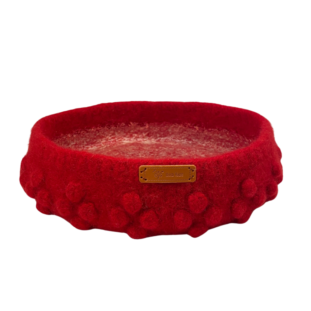 Et smykke av en kurv til bruk i julen! Eget unikt design som gir et klassisk julerødt innslag i huset. Denne nydelige kurven i naturmaterialer passer inn i mange interiører. Med innvendig diameter 30 cm og høyde 8 cm passer den godt som fruktkurv, oppbevaring av strikketøy osv. Kurven er innvendig belagt med naturgummi (latex) for beste fasong og vannfasthet, noe som også gjør den perfekt som potteskjuler.